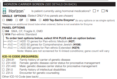 Complete the requisition Form: Select the appropriate test, complete all fields, afix one barcode to the upper right corner